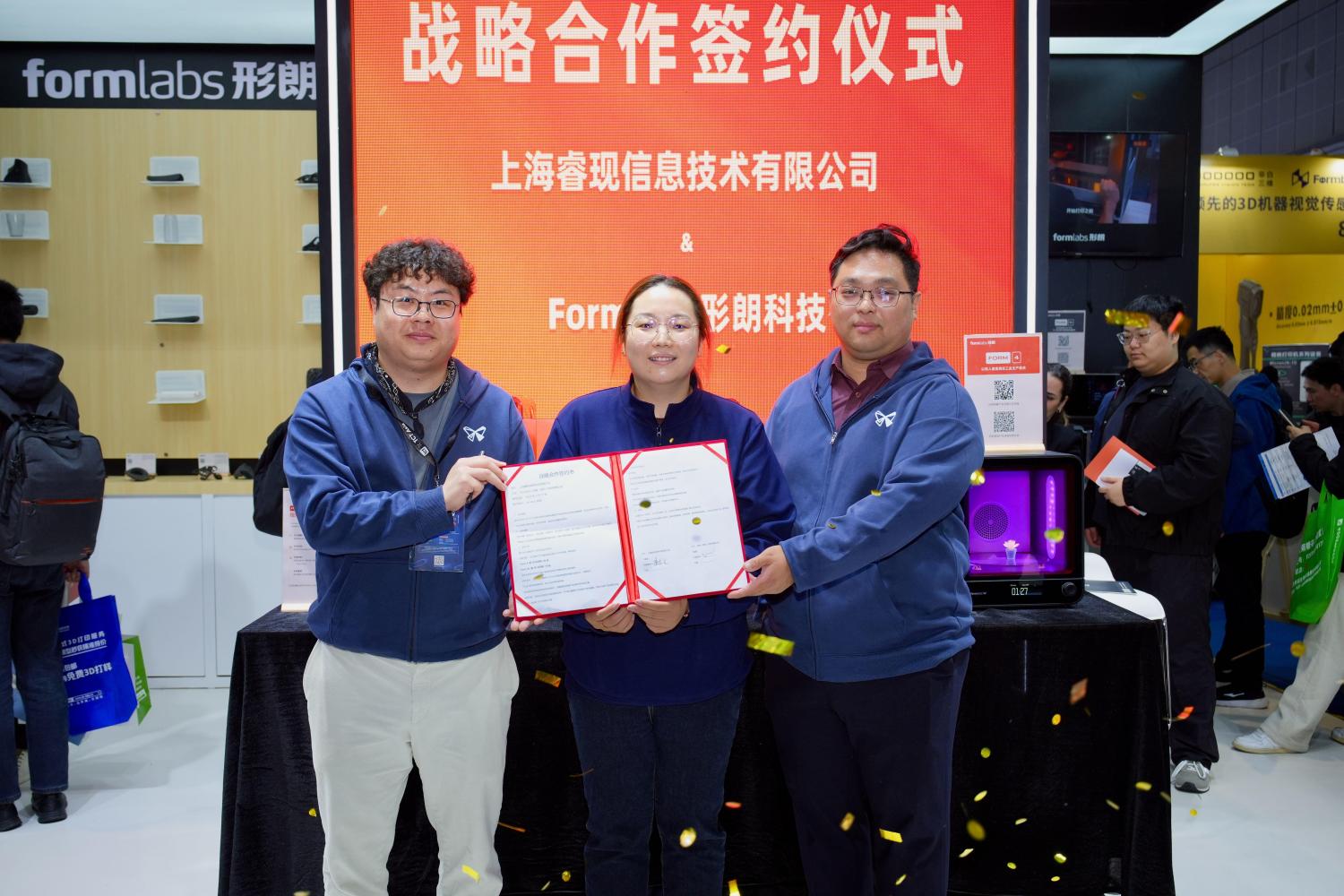 展会期间,形朗中国销售与市场负责人 Avery Feng代表形朗与上海睿现信息科技有限公司达成战略合作,助力睿现快速建立规模化的3D打印服务中心。