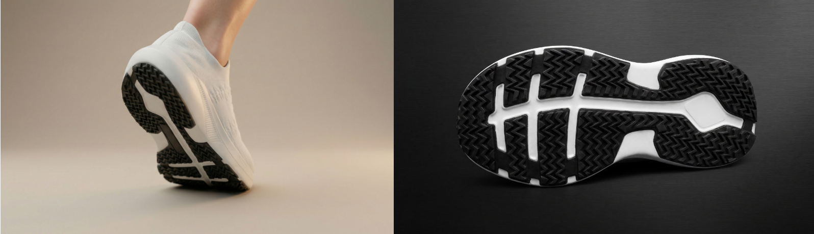 材料性能表现:Lacyon™在保持传统热固性橡胶优异的止滑、耐磨及耐久特性的同时,以更轻量化的设计兼顾功能性与穿着舒适性。 与热塑性聚氨酯弹性体(TPU)相比,Lacyon™提升至少25%的止滑力,确保各种地形与天气的穿着安全。